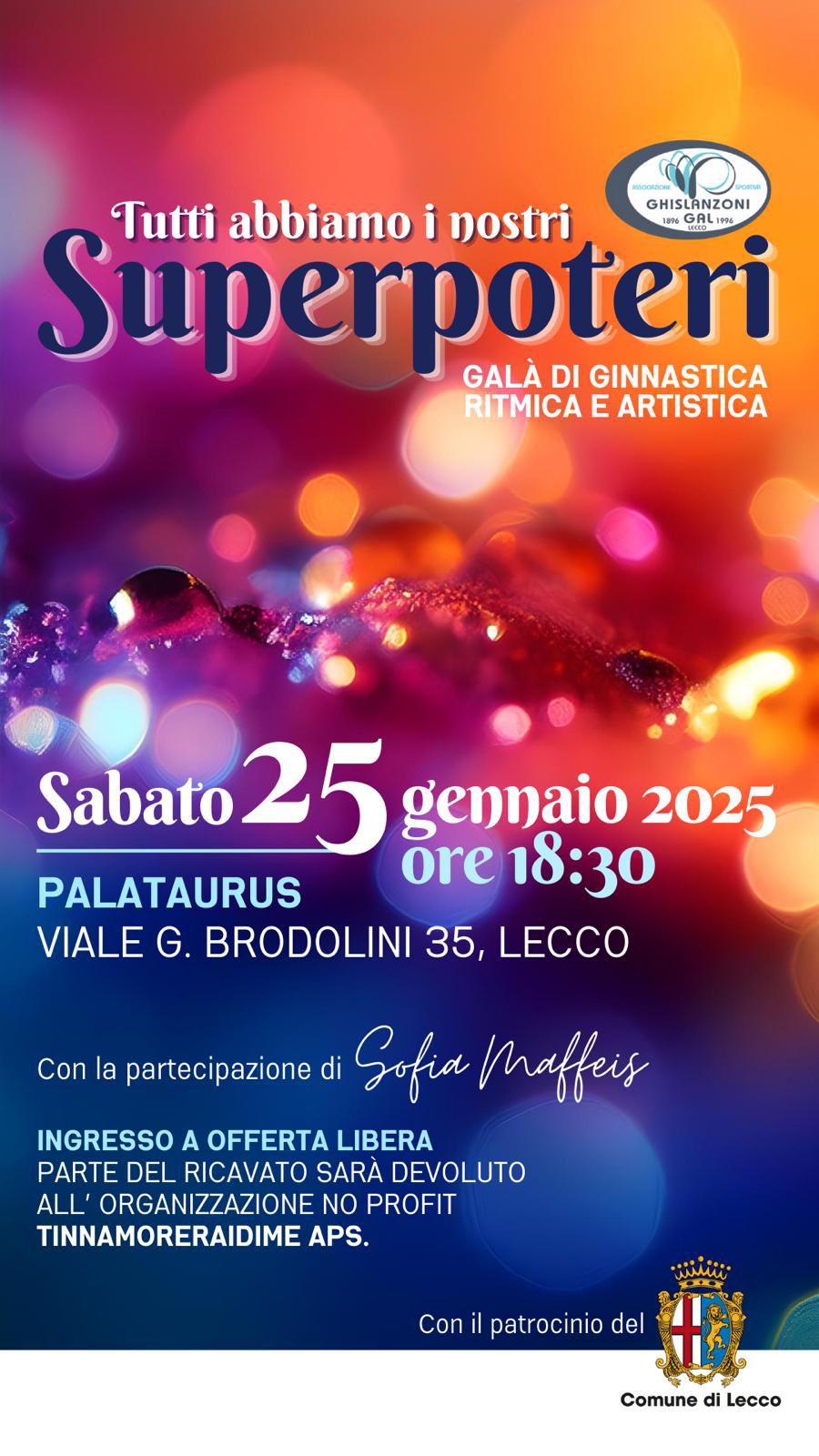 “Tutti abbiamo i nostri superpoteri” è il titolo del Galà di Ginnastica Ritmica e Artistica organizzato dall'ASD Ghislanzoni GAL, uno spettacolo sportivo ricco di emozioni, arte e solidarietà, al quale partecipaerà la giovane ginnasta Sofia Maffeis.
