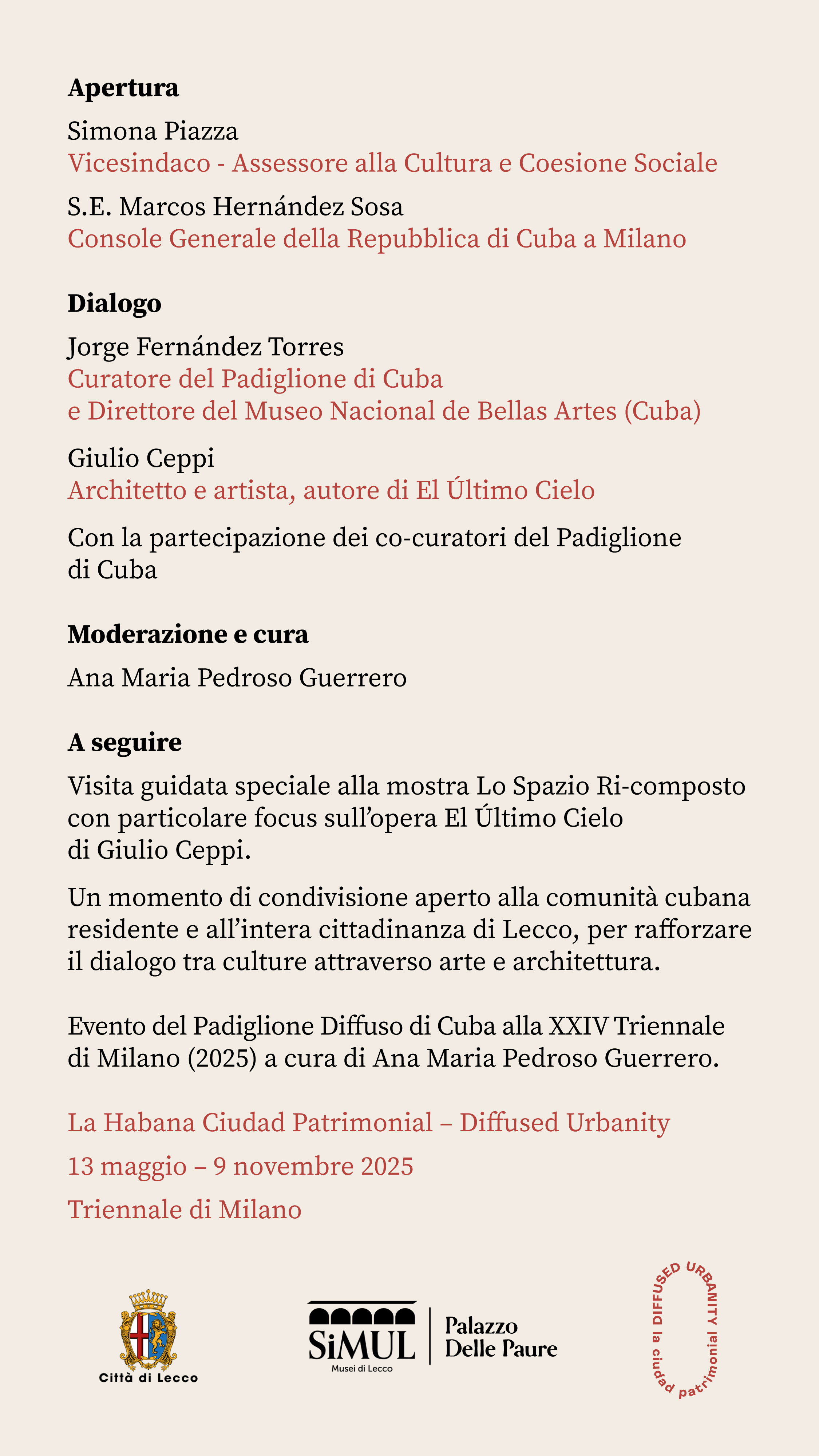 Evento del Padiglione Diffuso di Cuba alla XXIV Triennale di Milano (2025) a cura di Ana Maria Pedroso Guerrero