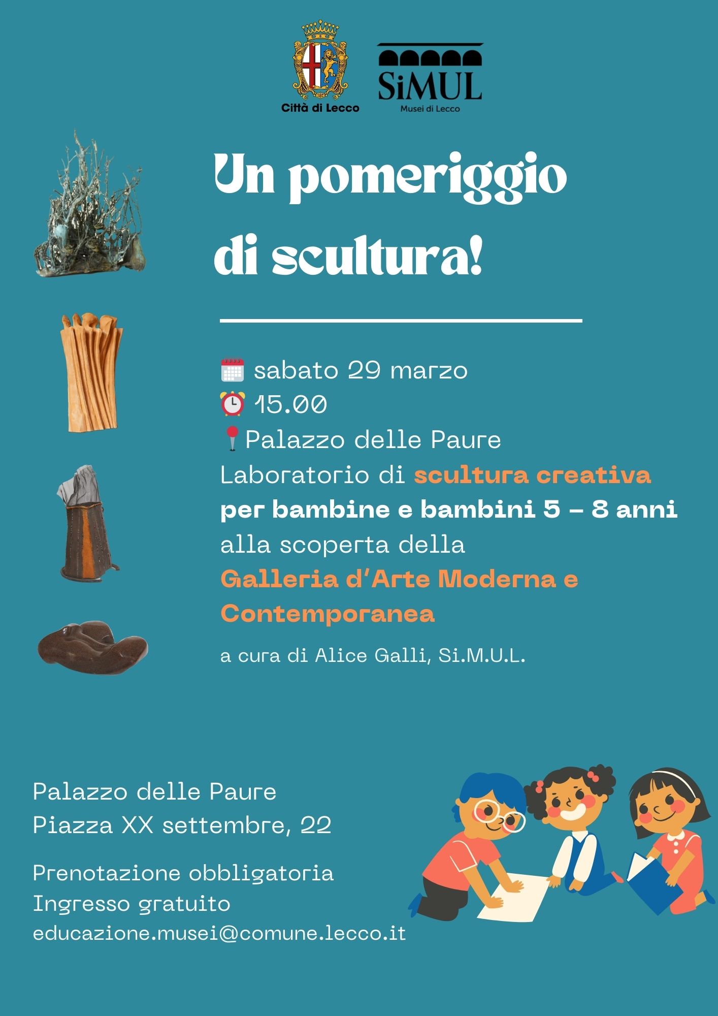 Il laboratorio Un pomeriggio di scultura! ci porta alla scoperta della Galleria D'Arte Moderna e Contemporanea, in particolare delle sculture presenti nella Collezione. Dopo una visita alla Galleria, accompagnati da un libretto per prendere appunti, bambine e bambini creeranno la propria opera scultore a partire dall’osservazione dell’opera “Racconto” di Alik Cavaliere, utilizzando argilla e materiali naturali.