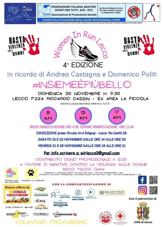 In occasione della “Giornata internazionale per l'eliminazione della violenza contro le donne 2025”, il 30 novembre si svolgerà la manifestazione sportiva ludio - motoria #insiemeèpiùbello.