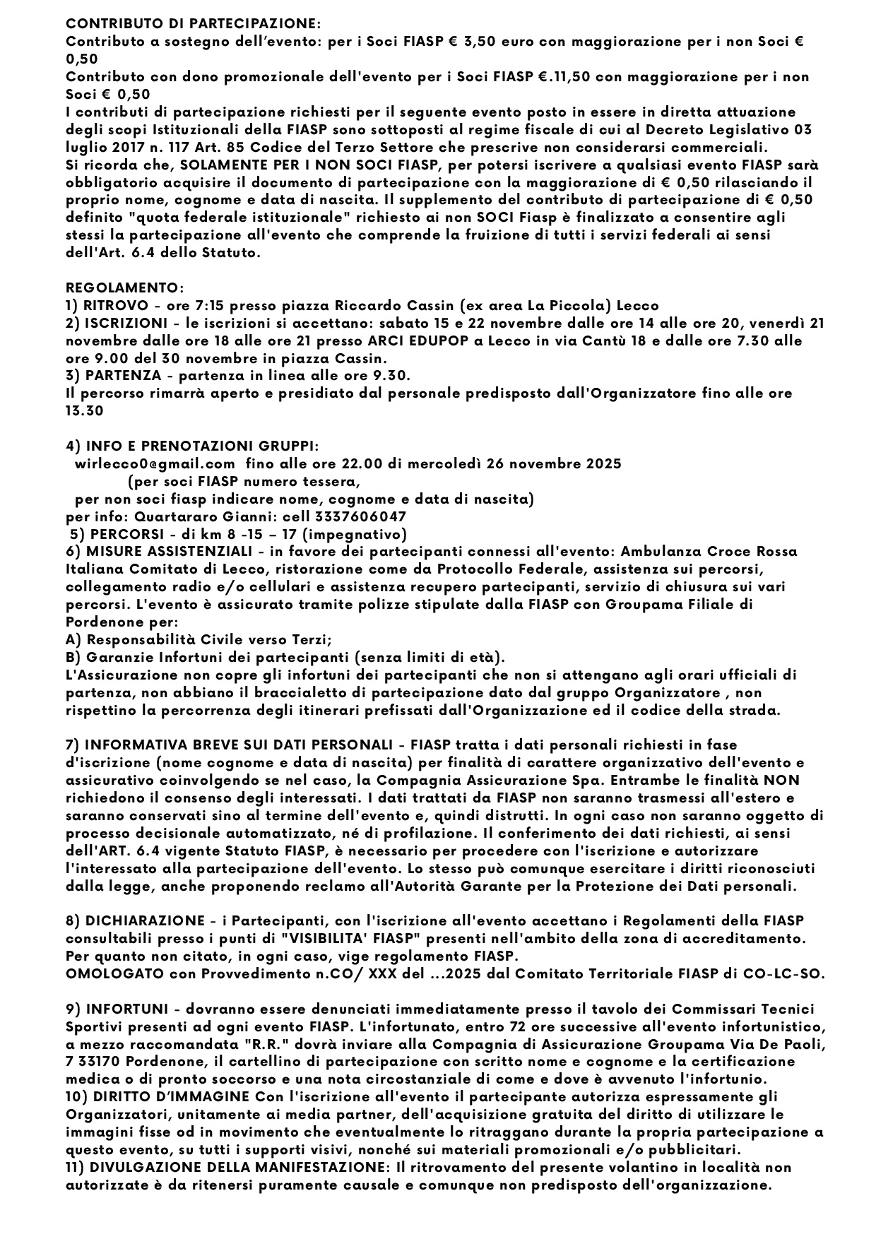 Il ritrovo è al piazzale Riccardo Cassin (ex Area La Piccola) e si potrà scegliere tra tre percorsi, 8, 14 e il più impegnativo di 17 km.
